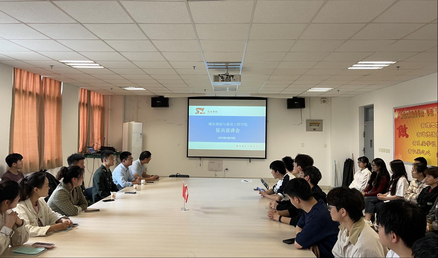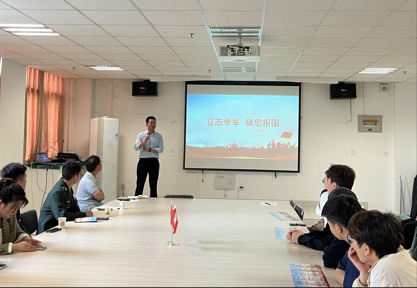为深入贯彻习近平强军思想,进一步落实国家相关征兵工作要求,帮助员工更加全面了解征兵政策,4月29日,公司召开2024年征兵宣讲会。会议特邀员工处国防教育科科长张哲,退伍士兵代表参加本次会议。建工公司全体辅导员参会,学工办主任杜江涛主持此次会议。