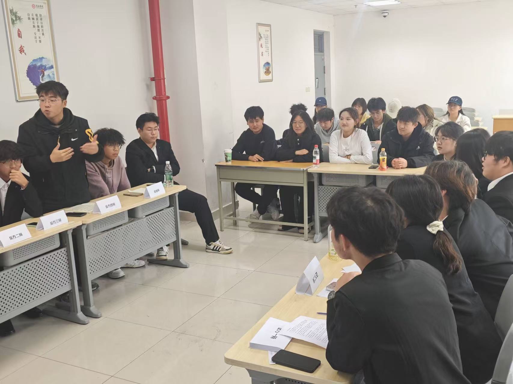 活动现场秩序井然,参赛人员与观众有序签到入座后,辩论赛正式拉开帷幕。立论环节中,正反方辩手依次亮明观点,逻辑清晰地搭建起论证框架,为后续交锋奠定基础;攻辩环节里,双方交替提问、犀利回应,精准聚焦对方论点漏洞,展现出扎实的思辨功底;自由辩论阶段,辩手们限时交锋、妙语连珠,临场应变能力尽显,现场氛围热烈,思想火花不断迸发;结辩环节中,双方总结升华观点,强化论证逻辑,针对性回应对方质疑,为整场辩论画上圆满句点。