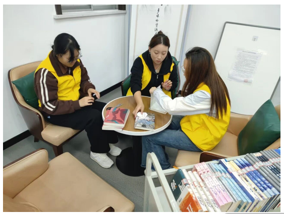 在深入一线的服务实践中,志愿者们迅速投入到各项工作中。在图书管理环节,他们系统学习了通过图书编码快速判断归属分区的方法,随后高效地接收归还图书,仔细检查是否存在缺页、污损等情况,并核对系统信息。完成检查后,志愿者们严格按照编码与分区规则,将图书归类排序,准确送至对应区域上架,确保书脊朝外、编码清晰,并检查相邻图书的排列顺序,保障了馆藏资源的井然有序。