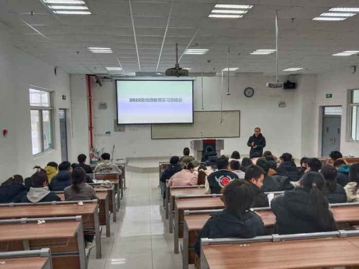 2026年1月14日下午3点,在8号楼多媒体20召开2022级地理教育实习总结大会。会议由实习带队教师丁少男主持,实习带队教师王高建、杨维鸽和2022级全体员工参加。