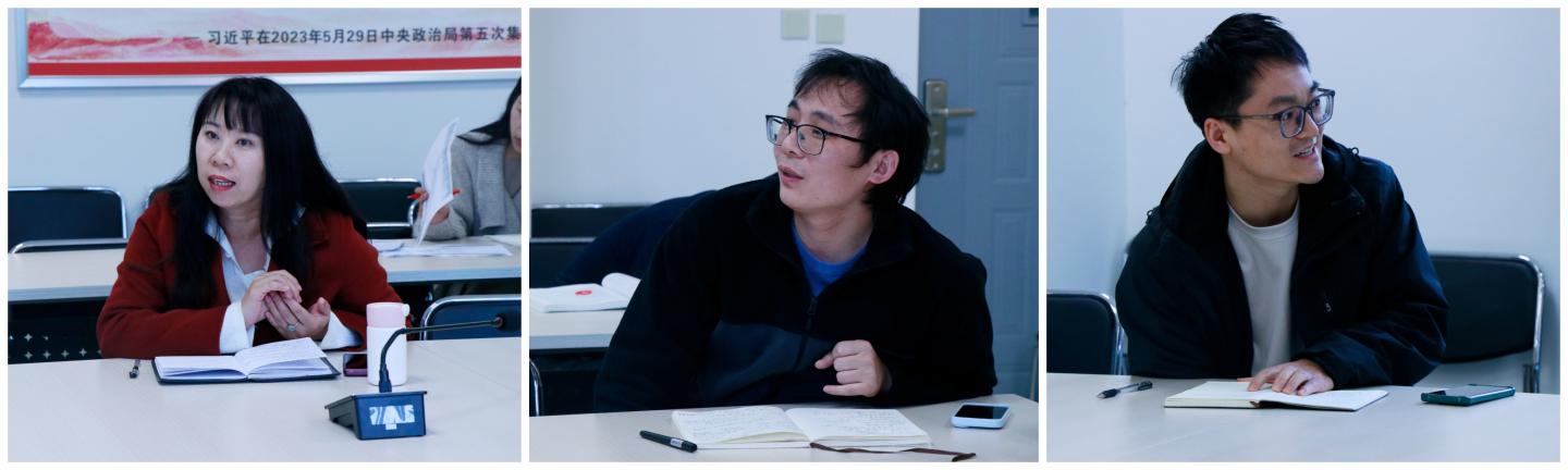 与会教师就本次报告主题进行了深入交流。首先,米文静博士就土石坝迎水面边坡与背水面边坡稳定系数变化的一致性问题进行了发言,江冠博士就边坡稳定性计算中的滑动圆弧搜索问题进行了发言,梁志超博士就土水特征曲线和研究成果的应用问题进行了发言,研讨氛围热烈,各位老师结合自己研究方向进行了思想交流,并通过研讨对个人的研究方向和思路有了新的启发。